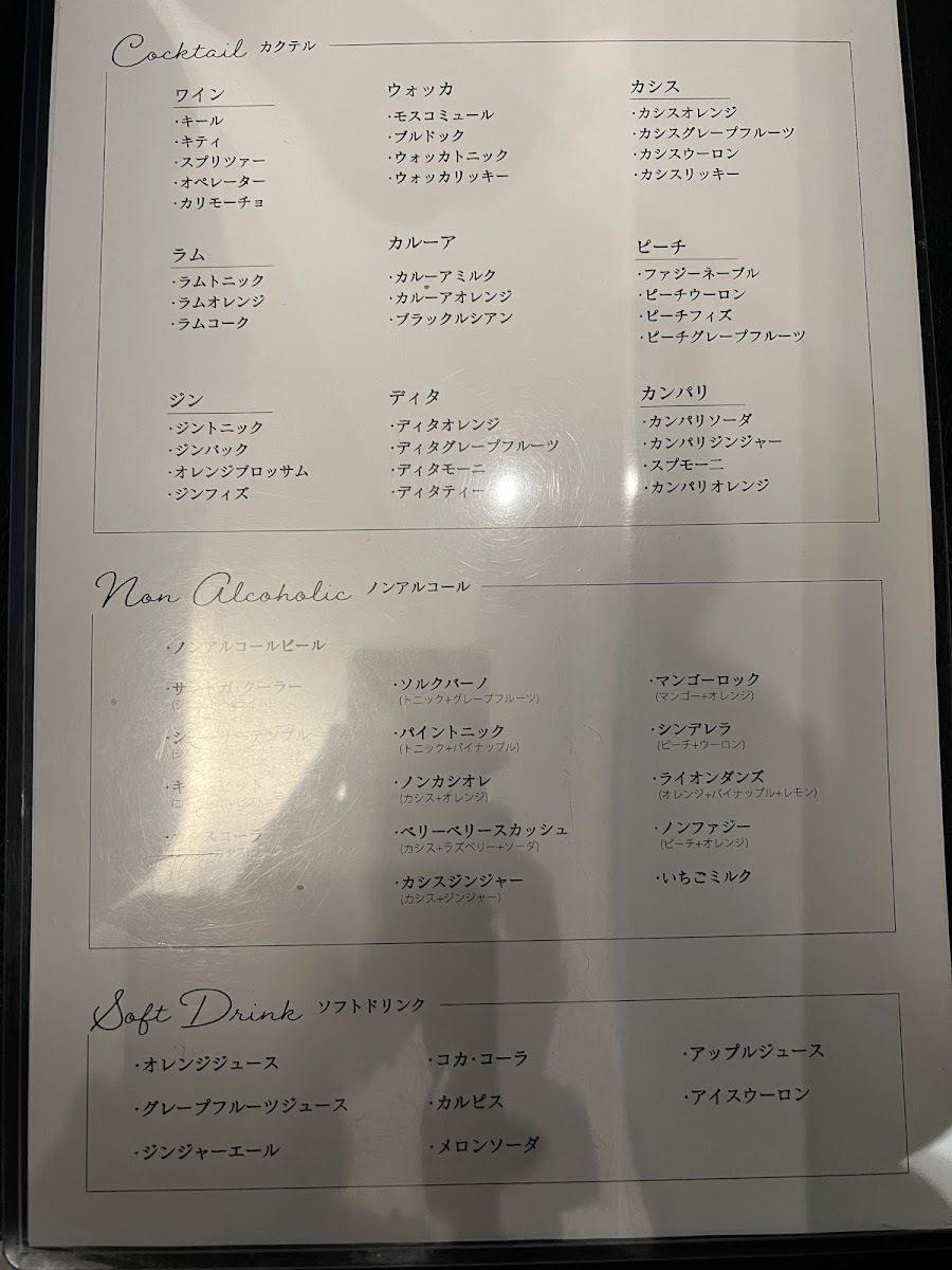 The drink selection complements the food nicely, featuring a range of cocktails and highballs with familiar flavors such as grapefruit and mango, perfect for unwinding. Light desserts, including vanilla ice cream with brûlée topping, offer a sweet finish that suits the casual setting.